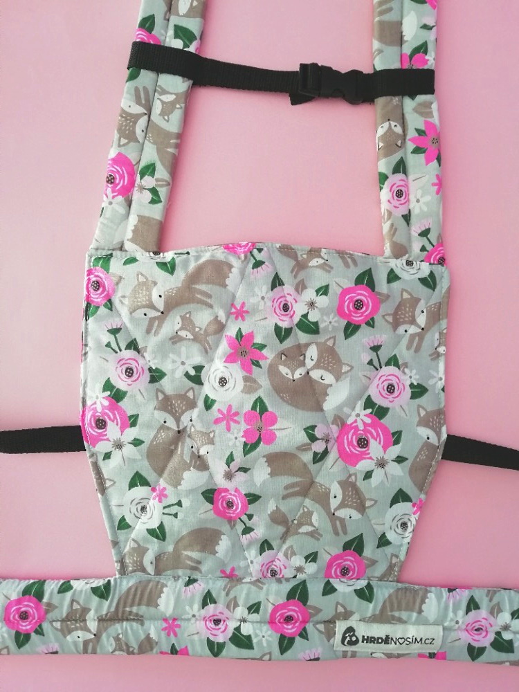 Dětské látkové nositko, celovzorové. Výplň molitan a vatelín. Prát na 30°, nesušit v sušičce.